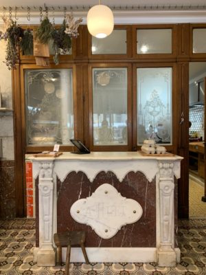 Le chef travaille donc avec des éleveurs qui nourrissent leurs animaux sans antibiotiques ni OGM et dans le respect de l’environnement. Grâce à son restaurant, situé à quelques mètres, il a mis en place un circuit vertueux qui utilise la bête entièrement : la boucherie vend la viande et la charcuterie tandis que le restaurant fait des bouillons avec les os, du jus avec les parures ou cuisine les morceaux qui ne seront pas vendus à la boutique : « je ne voyais pas quoi faire des foies de cochon, mes bouchers en ont fait une sublime terrine, en revanche, j’ai gardé les tripes et les jarrets de veau pour en faire un osso-buco. »