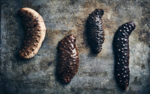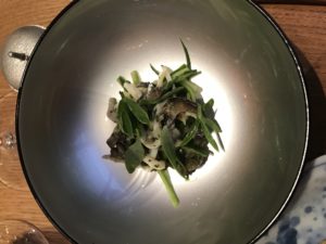 Une feuille d’endive lui paraît d’un ennui foudroyant mais montrez-lui la « carotte » d’endives (la racine très amère sur laquelle elles poussent) et son œil s’allume : « personne ne s’est jamais penché sur son potentiel gastronomique, pointe-t-il. Elle est très amère alors nous avons extrait son jus pour faire une sauce béchamel au blé fermenté. La feuille d’endive, elle, est intéressante pour sa fraîcheur. » A chaque nouvelle livraison en provenance du potager de Versailles, Romain Meder enclenche une « gymnastique du cerveau » systématique : il épluche, dissèque ou presse les produits, jusqu’au petit miracle de la naissance de recettes ou textures inattendues. Il a déjà décortiqué une moelle épinière de bonite séchée ; de la lippia (une plante aztèque) ; cuisiné de la mousse (« pour son petit goût de sous-bois ») ; fait grillé des orties, du trèfle ou de la chicorée; examiné l’artemisia, une plante au goût de Coca-cola; séché un pied de mouton et même réduit du chanvre en compote, après avoir fait torréfier sa graine… “L’anémonde de mer ou le concombre de mer ont une texture gélatineuse qui n’existent pas dans notre culture, moi ça m’intéresse beaucoup”, poursuit-il.