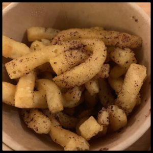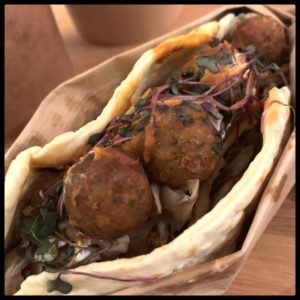 Ce menu street food s’accompagne de sauce barbecue et de sauce au fromage blanc et aux herbes. Côté accompagnement, on se régale de fines frites de panisse (la bonne idée) qui changent des éternelles frites de pommes de terres ou des potatoes ou d’un très régressif gratin de macaronis gratiné au parmesan… Le Dwich veggie avec ses falafels et ses crudités croquantes est aussi gouteux que déculpabilisant. Pour finir, on ne nous assomme pas avec un dessert roboratif mais de trois délicats choux à la crème au chocolat, juste ce qu’il faut de touche sucrée pour finir le repas.