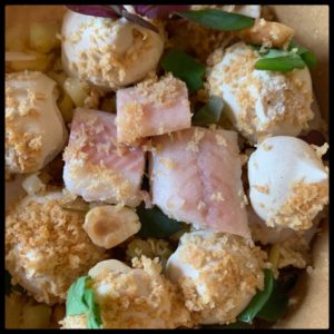 Au menu donc, un équilibre entre une “comfort food” réjouissante et haut-de-gamme, en tapas, avec des croquettes de poisson/hareng fumé et mayonnaise à la bergamote et un plat “signature” qui garde tout l’équilibre et la classe qu’on lui a connu au restaurant: les fameuses “eels”, anguilles avec réglisse, beurre noisette, pommes et noisettes… Un petit délice. En dessert, des petites bombes sucrées (cookie chocolat sésame ou gâteau au chocolat, cacahuètes, caramel beurre salé) ou un impeccable ananas rôti aux épices…