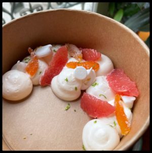 En entrée cette semaine: Tartare de boeuf et jaune d’oeuf confit au soja et herbes fraîches, velouté de topinambours au beurre noisette (avec ses chips craquantes par dessus) ou truite fumée, pommes de terre, ricotta et sarrasin; côté plats, risotto d’épeautre au citron confit et légumes d’Ile-de-France (sans sauce, dommage), et Saint-Jacques de la baie de Seine, butternuts confits et jus de barbes (délicieux et de saison). Côté dessert, la légèreté d’une sorte de pavlova au pamplemousse ou un tiramisu bistrotier (du Flaubert). Ce menu s’accompagne des bouteilles de la cave, sélectionnées par le sommelier Anthony Pedrosa pour s’accorder aux différentes étapes de la dégustation.