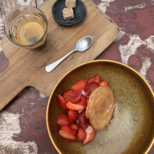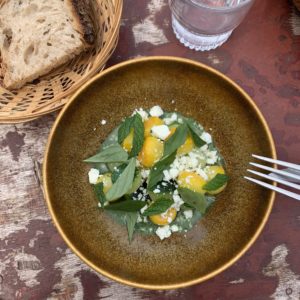 Dans la cour du jardin, sur de jolies tables chinées, en fer forgé blanc, on déguste une cuisine durable, simple et goûteuse, nourrie par les fermes et les marchés voisins: un maraîcher bio, les fromages de chèvres de la ferme des Cabrioles, des herbes issues d’une cueillette sauvage et parfois du potager de la maison. Les yaourts, le pain et le beurre sont faits sur place. Le menu des 25 couverts de D’Une Ile change ainsi tous les jours, en fonction de la nature. Ce jour-là, c’était saumon d’Isigny, oseille et concombre ou pâté en croute maison ; poularde de Culoiseau au jus gras ou boudin noir au jus de groseille et une tarte aux fruits rouges avec un sorbet de basilic pourpre…