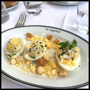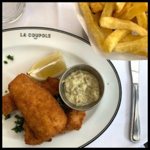Le quartier historique de Montparnasse a récemment retrouvé le panache de ses grandes brasseries, rénovées en façade et ressuscitées dans l’assiette. Parmi elles, la mythique Coupole, ses 500 couverts et son immense salle, ses dizaines de serveurs, habiles et en habits et son légendaire dancing se sont offert, pour les 90 ans du lieu, la rénovation des mosaïques Art Déco et une nouvelle terrasse. La nouvelle carte s’est recentrée sur les essentiels du genre, et privilégie la qualité à l’opulence. Elle envoie donc choucroutes, pieds de cochon, steaks au poivre ou soles meunières et affiche un banc d’écailler flambant neuf, qui fait aussi livraison. Le déjeuner du dimanche roucoule au rythme d’un œuf mimosa généreux en mayo ou des ravioles ultra-gratinées et un vaillant fish’n chips/frites.