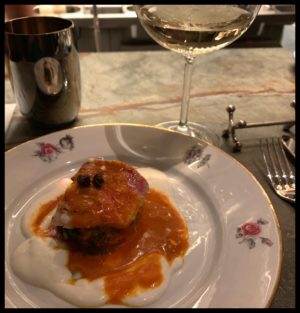 Un souffle de liberté décoiffe quand même la carte généreuse de Shabour (« cassé » en hébreu) : on y trouve aussi bien un « frenavon de la paix », un pain brioché au zaatar (un mélange d’herbes) enroulé autour d’une branche d’olivier qu’un œuf mollet à l’écume de tahini (crème de sésame) et œufs de saumon ; un rouget en gratin matchuba (condiment pimenté) et féta ; des tortellinis au chorizo, machluta, labneh et pignons de pin, un poulpe au baba ganoush (purée d’aubergine au sésame) et harissa, un cigare d’agneau avec vinaigrette aux cornichons, etc.