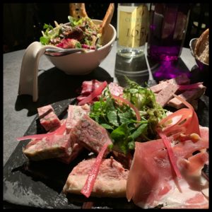 Arthur Lecomte et Dimitri Aboulker sont deux copains carnivores qui ont décidé de mettre en avant la qualité des matières premières. Après leur première adresse, Bien Élevé, où les viandes maturées du type bœuf angus occupent une place de choix, celle-ci fait la part belle à la rôtissoire et les grandes tablées d’amis, dans un lieu moderne et épuré, avec des lampes malignes en forme de torchons suspendus aux murs. Ici, on célèbre la convivialité et le partage. On commence par des tapas à picorer : tataki de faux-filet angus fumé (13 euros), jambon noir de Bigorre affiné vingt-quatre mois (16 euros), croquette de cochon fermier (8 euros) ou encore couteaux au beurre persillé (10 euros). On enchaîne sur de grandes pièces de viande rôties ou à la braise : coquelet et son jus de viande (17 euros) mais aussi épaule d’agneau, côte de bœuf maturée, poitrine de veau rôtie… Les provenances sont tracées et validées : bœuf et veau des viandes du Châteauneuf, volailles de Samuel Fouilliard ou encore porc noir de Bigorre… Le dessert, lui aussi, se fait géant avec un millefeuille vanille et noisettes caramélisées à partager (19 euros) ou une mousse au chocolat au beurre salé (8 euros). Un menu effectivement bien ficelé, avec un avant-goût de printemps : la terrasse extérieure vient d’ouvrir…