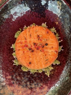 On reconnaît tout de suite l’empreinte de Chloé Charles, cheffe nomade et engagée dans l’écologie et l’anti-gaspi et électron libre de Top Chef. Ici les plats sont presque tous végétariens, sans gluten ou lactose. Passée par l’Astrance ou chez Septime, elle décide ici de montrer qu’une cuisine sur le pouce peut être savoureuse et colorée : « tarte toute jaune » à la crème de gorgonzola, courgette jaune crue, poivrons marinés, artichauts et noisettes ; salade fraîche de tomates à l’hibiscus, vinaigrette aux fleurs, câpres et oignons ou feuilleté roulé à la ricotta, pois chiches, mélange d’herbes… Les créations sucrées d’Andréa Sham viennent clore le bal avec délicatesse (pavlova nuage mûres/lavande…).