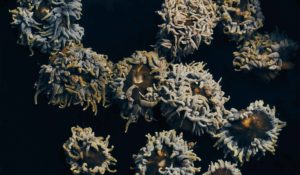 Gratter la coquille et recomposer l’huître dedans ; la recouvrir de mayonnaise et brûler au chalumeau. Ajouter quelques graines de citron caviar et du pollen frais.